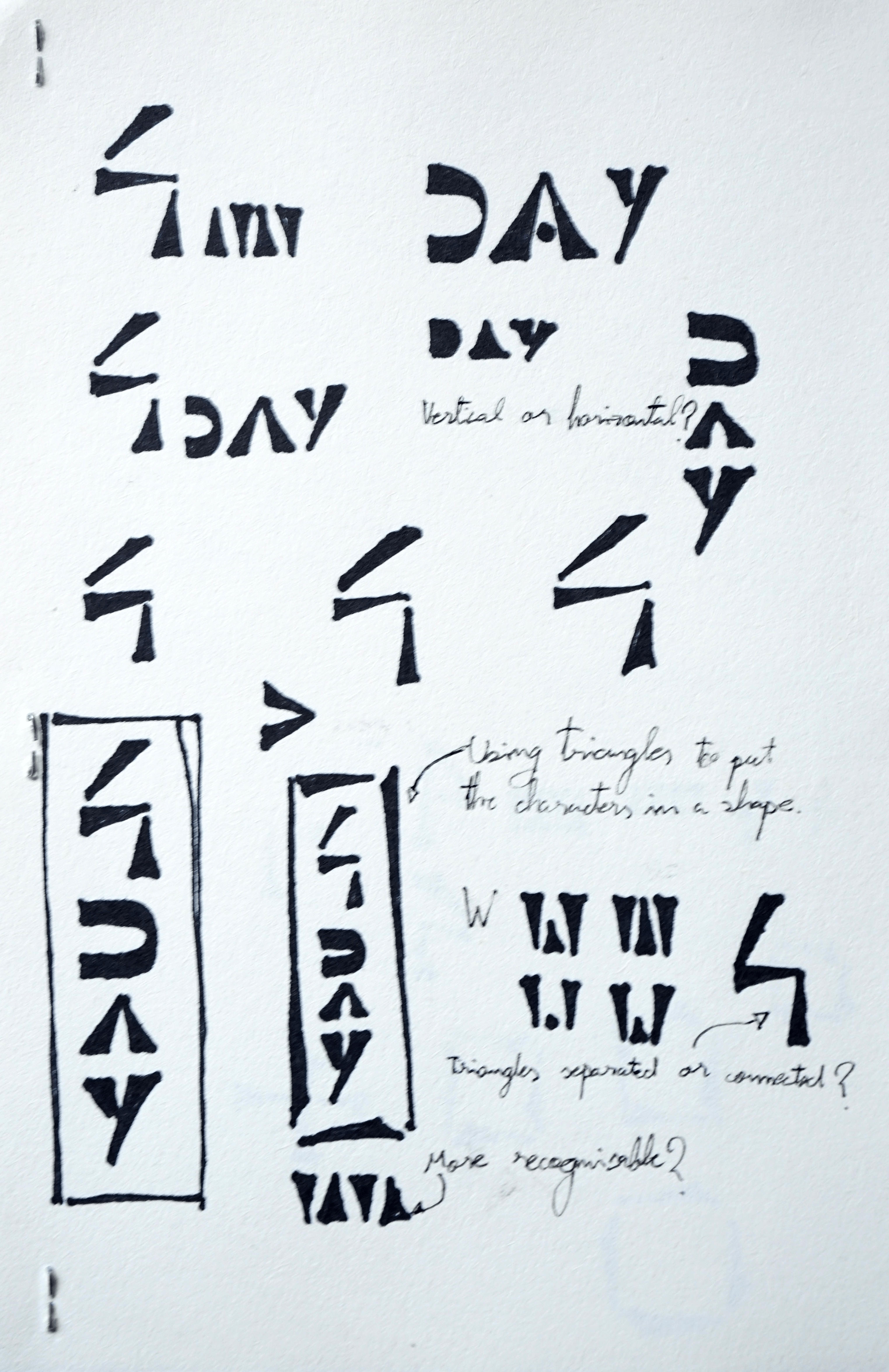 I noticed that the main object of all my sketches was the four made out of triangles, and since I hadn’t used illustrator before I challenged myself to make it in digital.