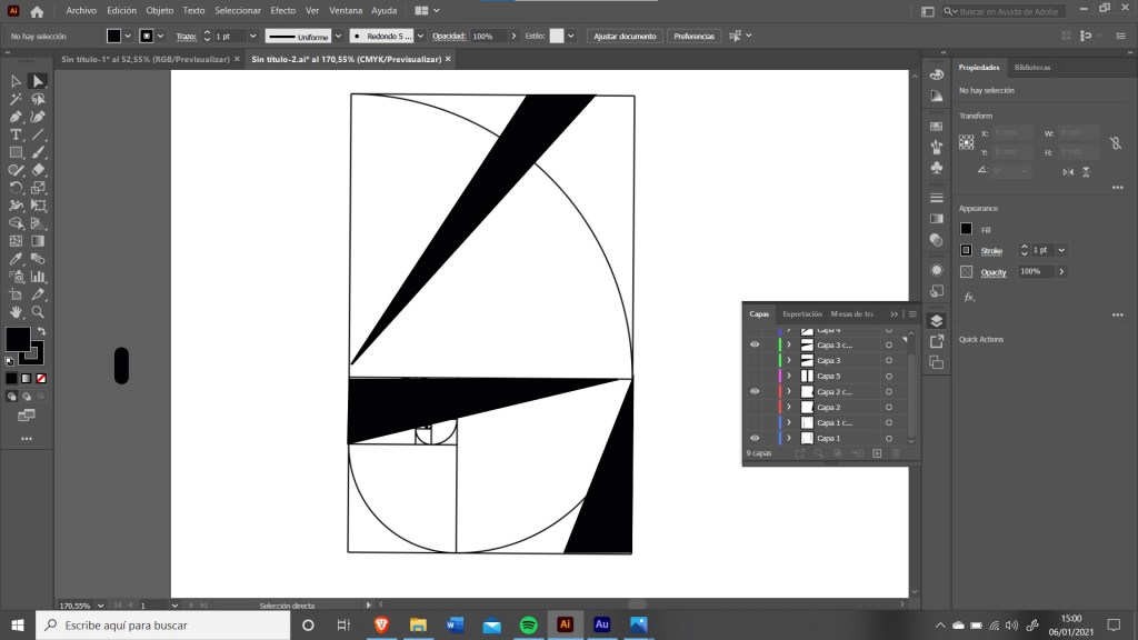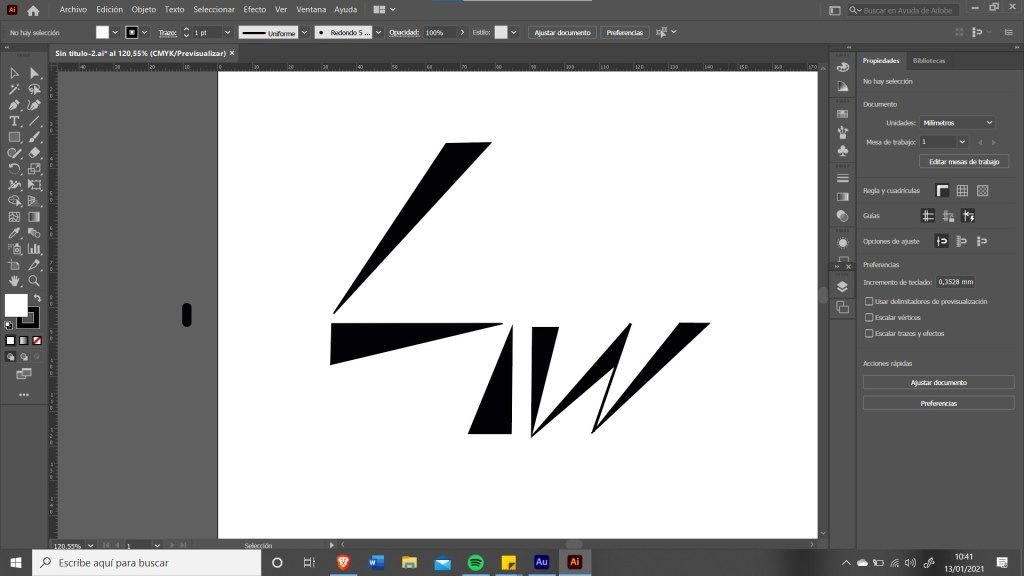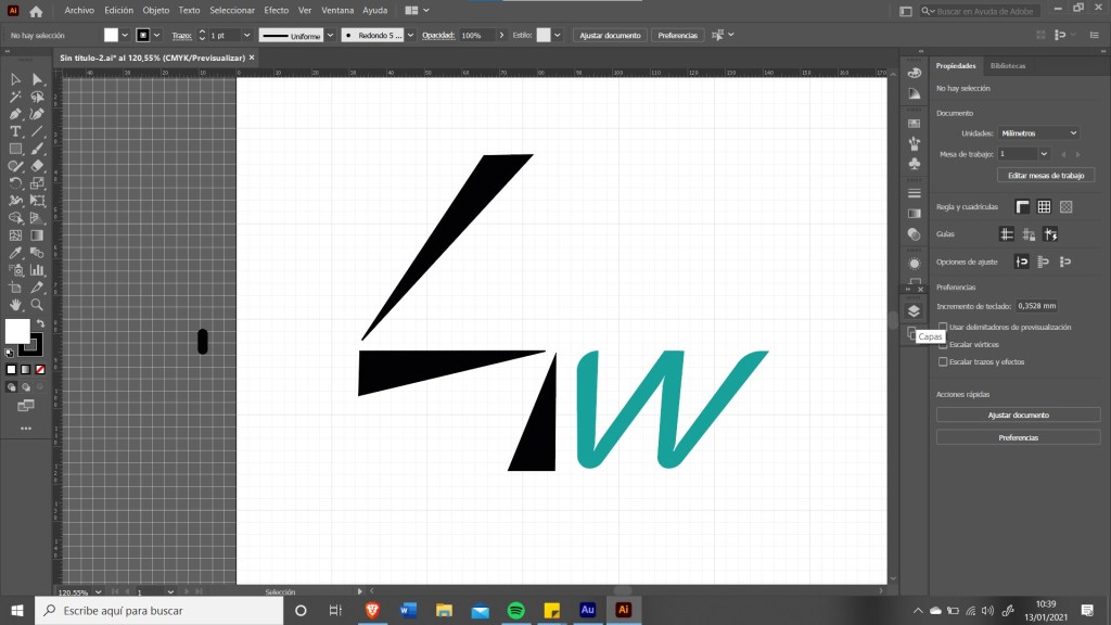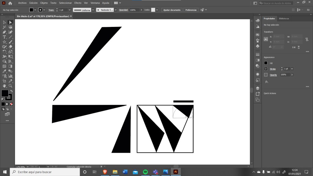 I used, once again, the fibonacci sequence to figure out the proportions and I was extremely happy with the results. The problem is that ev erything that I added seemed to be secondary, the four had too much protagonism but I wanted to add the ‘W’ somewhere. These are some more concepts from illustrator.