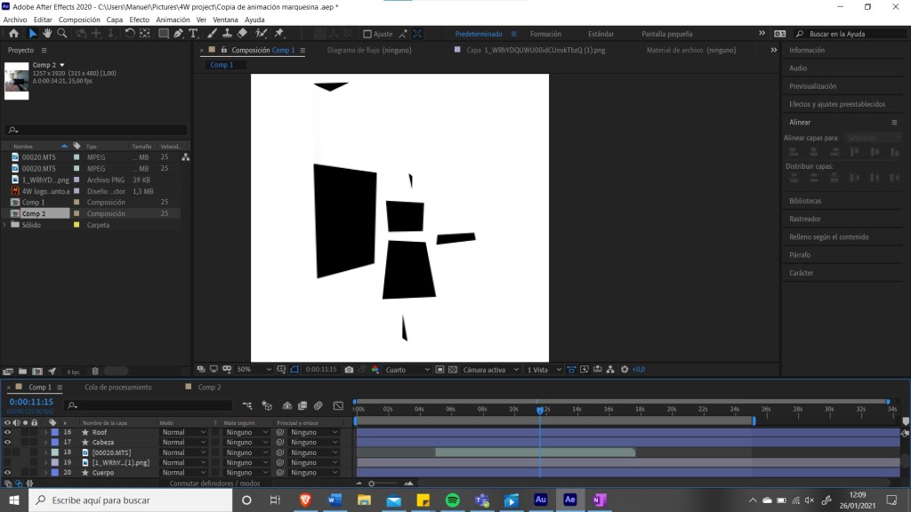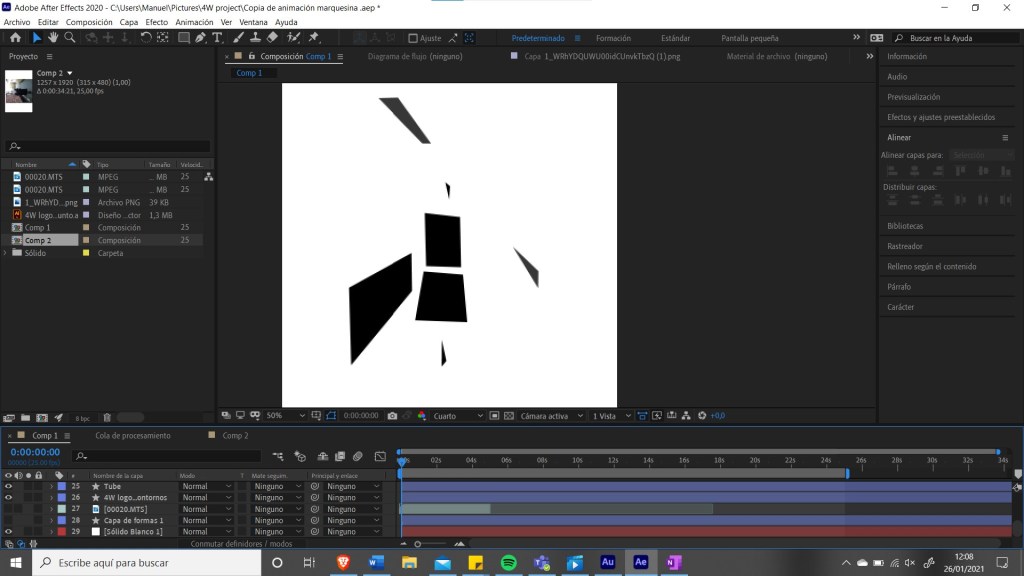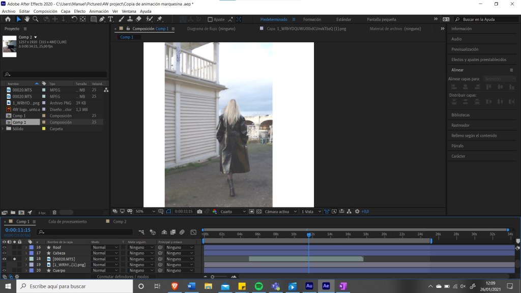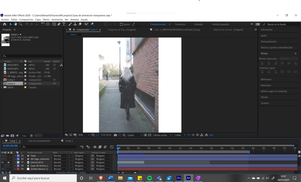 So for the animation I noticed in the last second, since the person had to transform into a 4 to create the logo, that the video was in the opposite direction that it should be, so somewhow I managed to invert and position correctly each layer, add text and insert the audio. This is the final result: