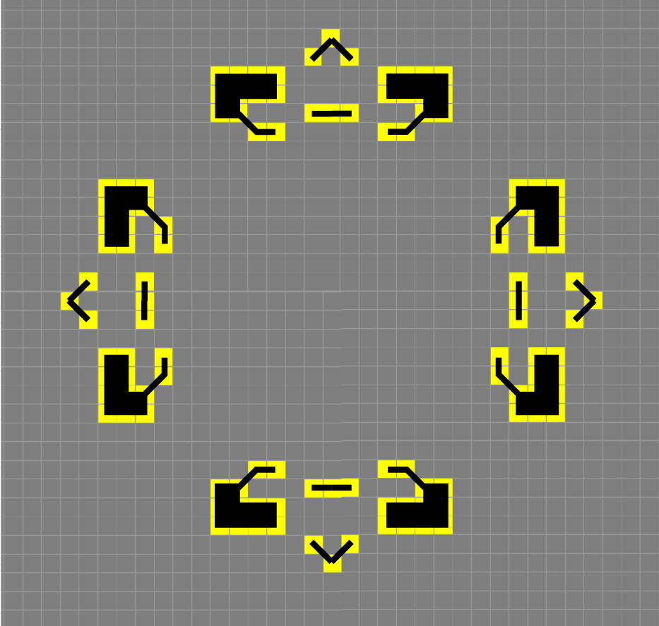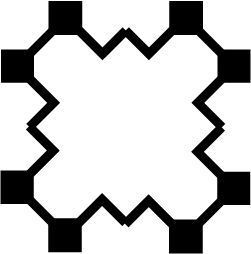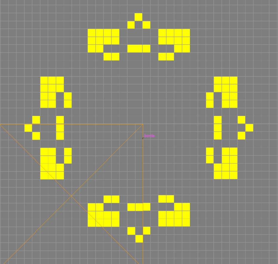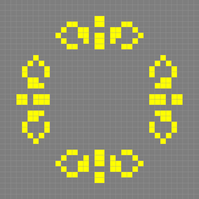 I started playing with the shape and different variations on it, when I had the idea of inserting the symbol in Conway’s Game of Life, of which I have already talked about in another blog post. I played with different dimensions and proportions until I found that 19 x 19 pixels in the base square made the succession stable. I started looking at the variations that the algorithm produced and realized that I could not only make a logo from it, but that I could make an animation for the homepage.