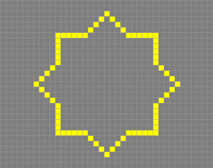 I decided to not use the pixelated design that Conway has to offer, I saw that if I drew a vector line with each point in the center of the pixels (filling in the places where there was more density) I could create a much more unique and visually appealing design that also reflected my aesthetic better. The original sequence has around 200 variations until it becomes stable, but since I had a time limit I decided to make 50 (it ended up being 54) and reverse it to create a gif.