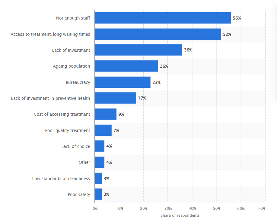 We started researching Hong Kong, since it’s one of the few countries that uses 5G extensively, and we saw that one of the main uses was healthcare. Bringing it back to the UK, the country has a surprising lack of efficiency the in its health services. This resonated with us because of personal experience. This is mainly because of understaffing, but according to https://www.statista.com/statistics/1274307/problems-with-national-health-care-system-in-great-britain/, long waiting times for appointments and general inefficacy of the system is the third biggest problem the NHS has. This is the type of issue that 5G can help with.