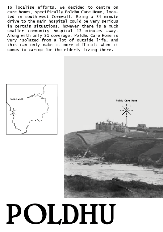 Taking into account the client, GiffGaff doesn’t have the resources to put 5G in every hospital and make the system run smoother. Also, intervening in the NHS might not be the wisest idea. So we decided to localize our efforts. Quickly, care homes came to mind, places with constant need of medical attention that would certainly benefit from having a more efficient system. This would make a difference.