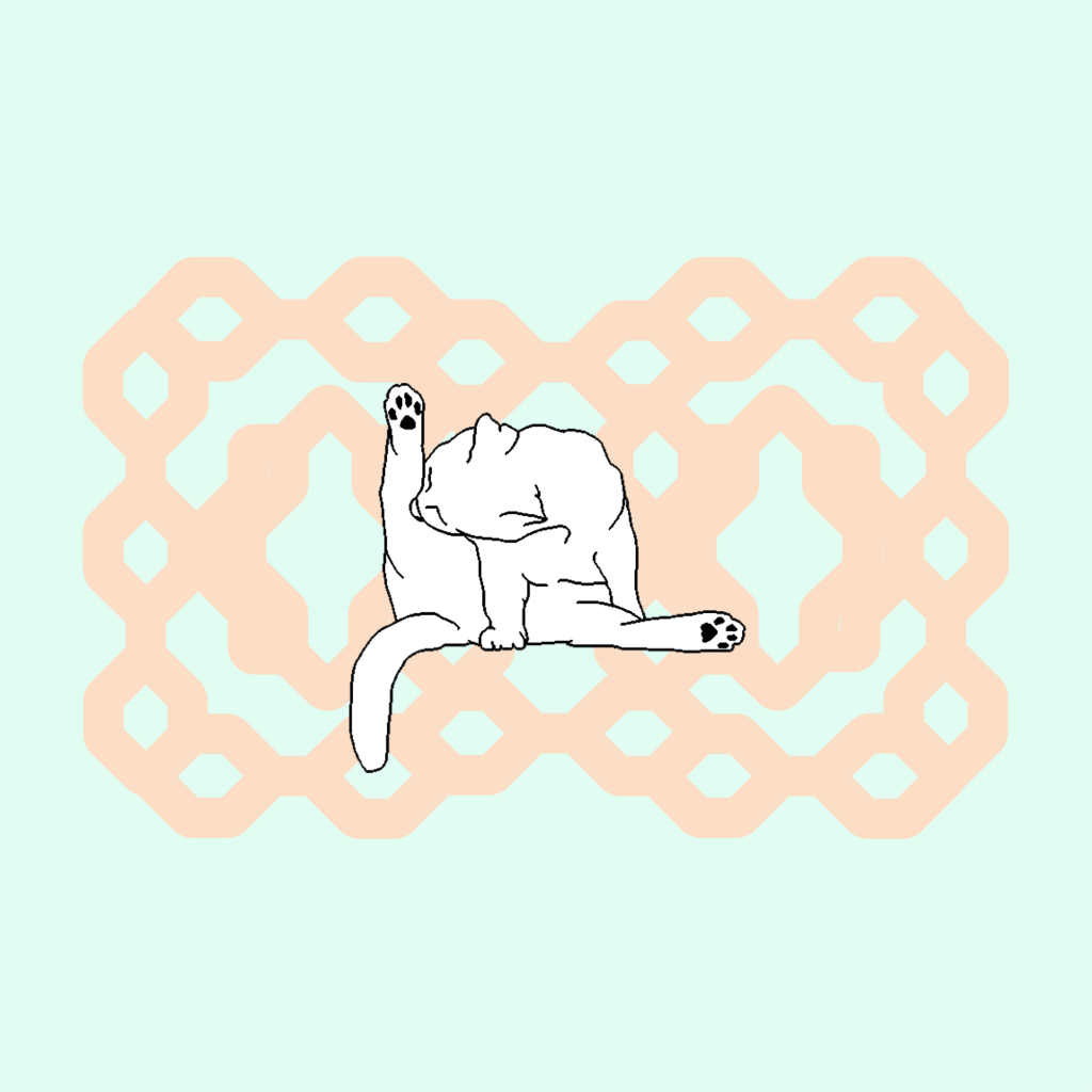 For the logo I decided to use a cat grooming itself. It’s a very recognisable image, as well as very cute, that illustrates perfectly the ethos of the company. I made this illustration on MS paint. In terms of typography I used fonts I found in open-source Velvetyne Type Foundry.